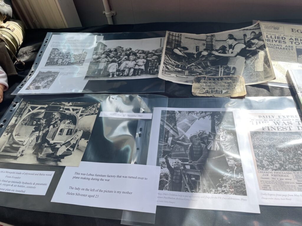 Attendees brought a number of items of memorabilia including photographs, newspaper articles, family mementoes, menus and citations. There was even a baby's gas mask displayed on a baby doll!
